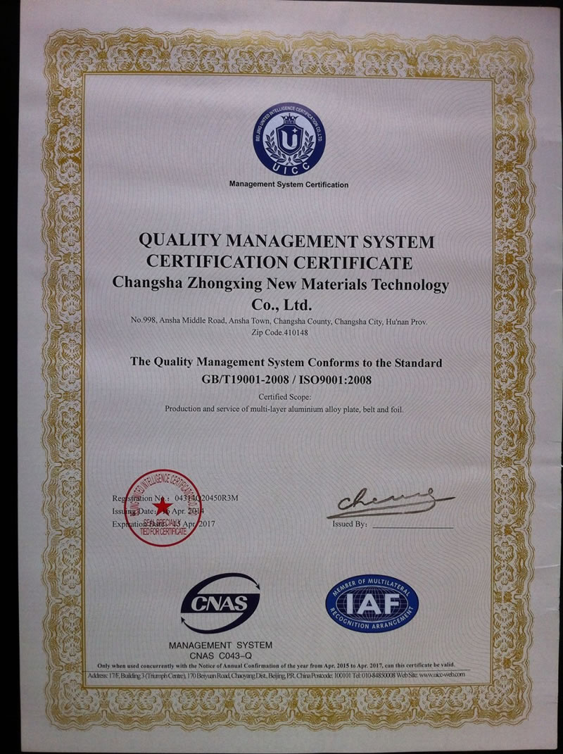 長沙眾興新材料科技有限公司是一家專業生產汽車熱交換器用三層覆合鋁合金板、帶、箔的生產廠家,成立于2002年,是鋁合金深加工的高科技、高附加值的股份制民營企業,屬于長沙市六大產業集群中的新材料領域,座落在湖南長沙經濟技術開發區,地處京珠高速、319國道、107國道交匯處。幾年來,公司始終本著“以誠為本,以信立業”的原則,奉行“敬業務實、精益求精”的企業精神,以“過硬的技術,可靠的質量,合理的價格,完善的服務”為服務宗旨,產品市場占有率不斷提高。